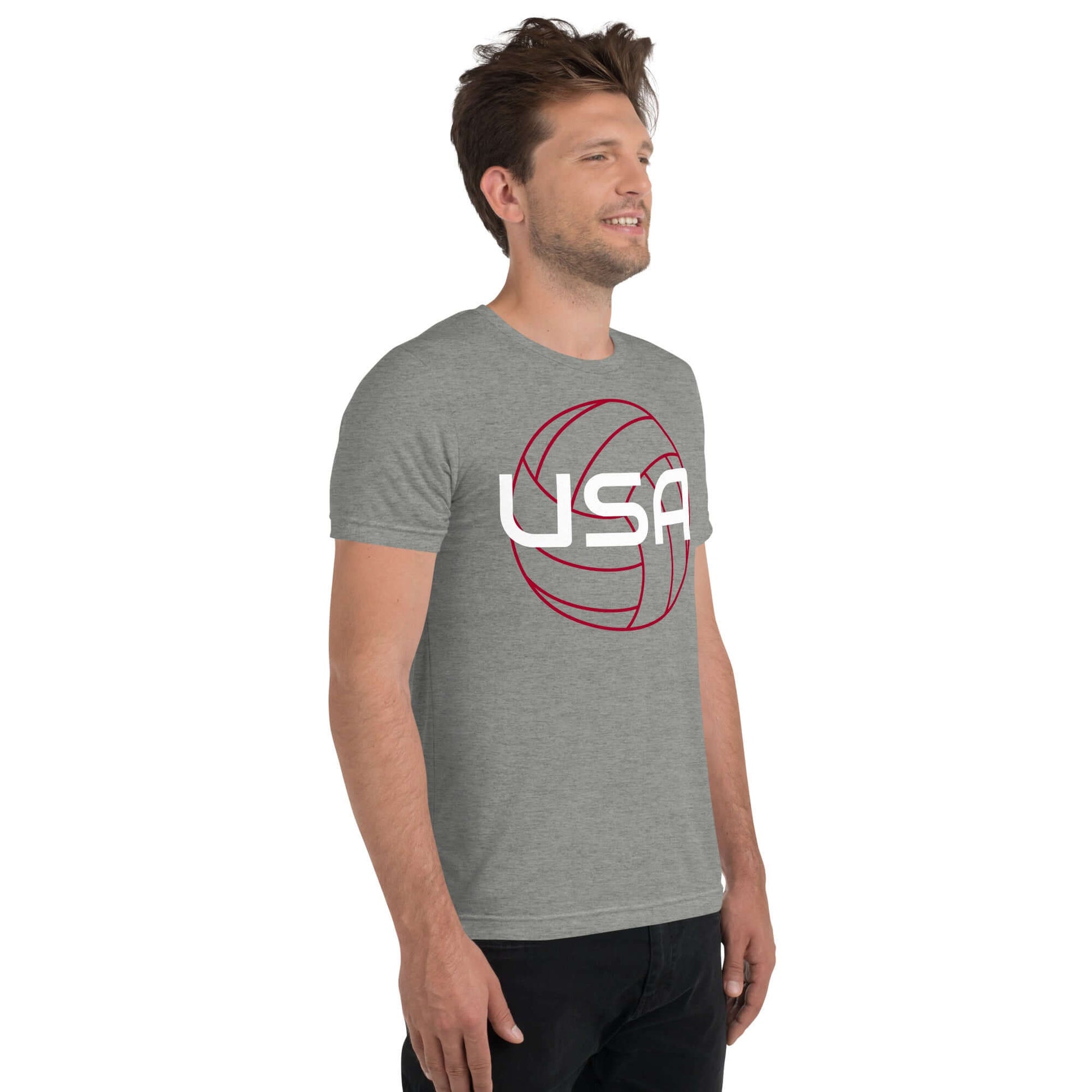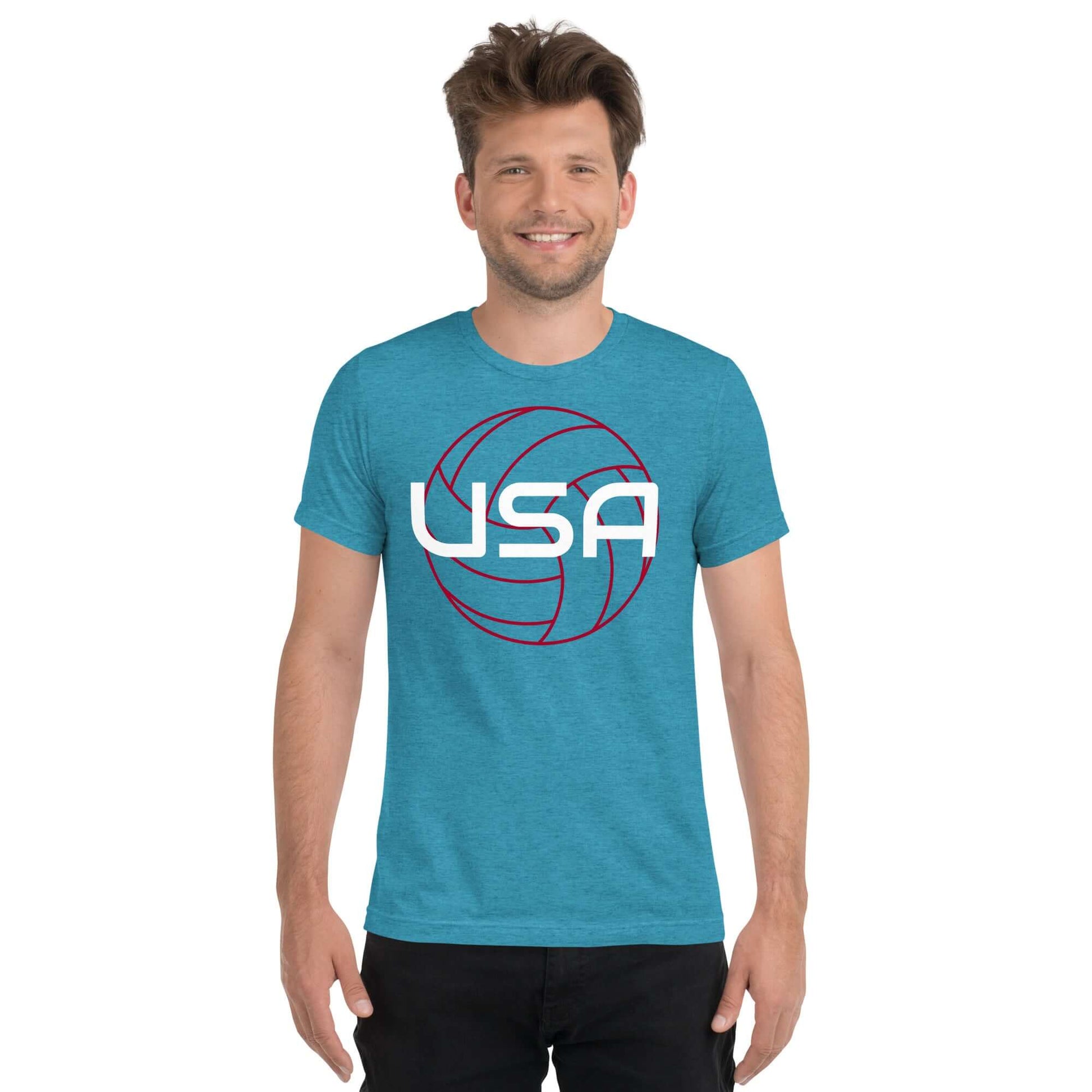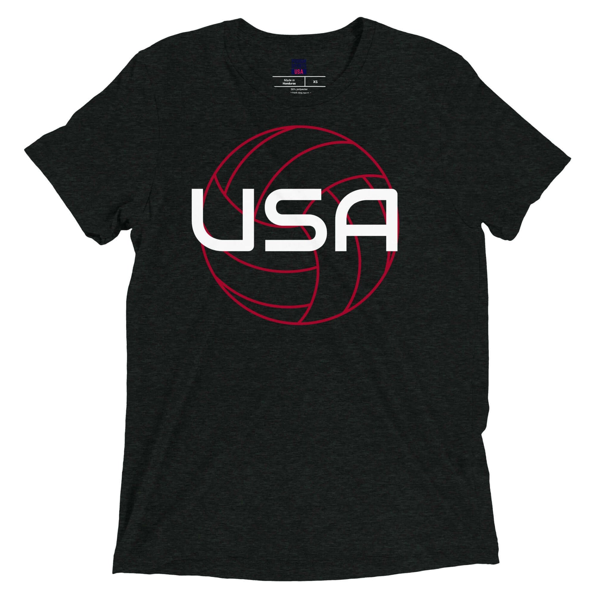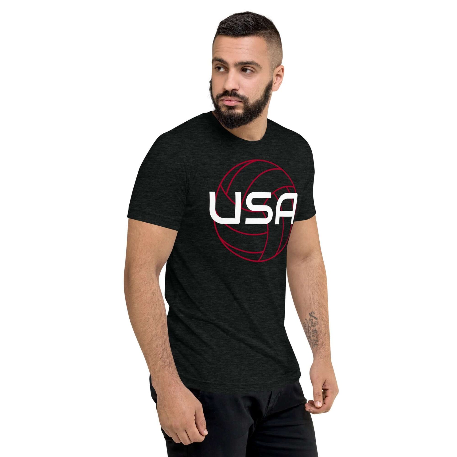 Dive into the game with our USA Volleyball Men's T-shirt! Tri-blend fabric for a vintage fitted look, extreme durability, and supreme comfort