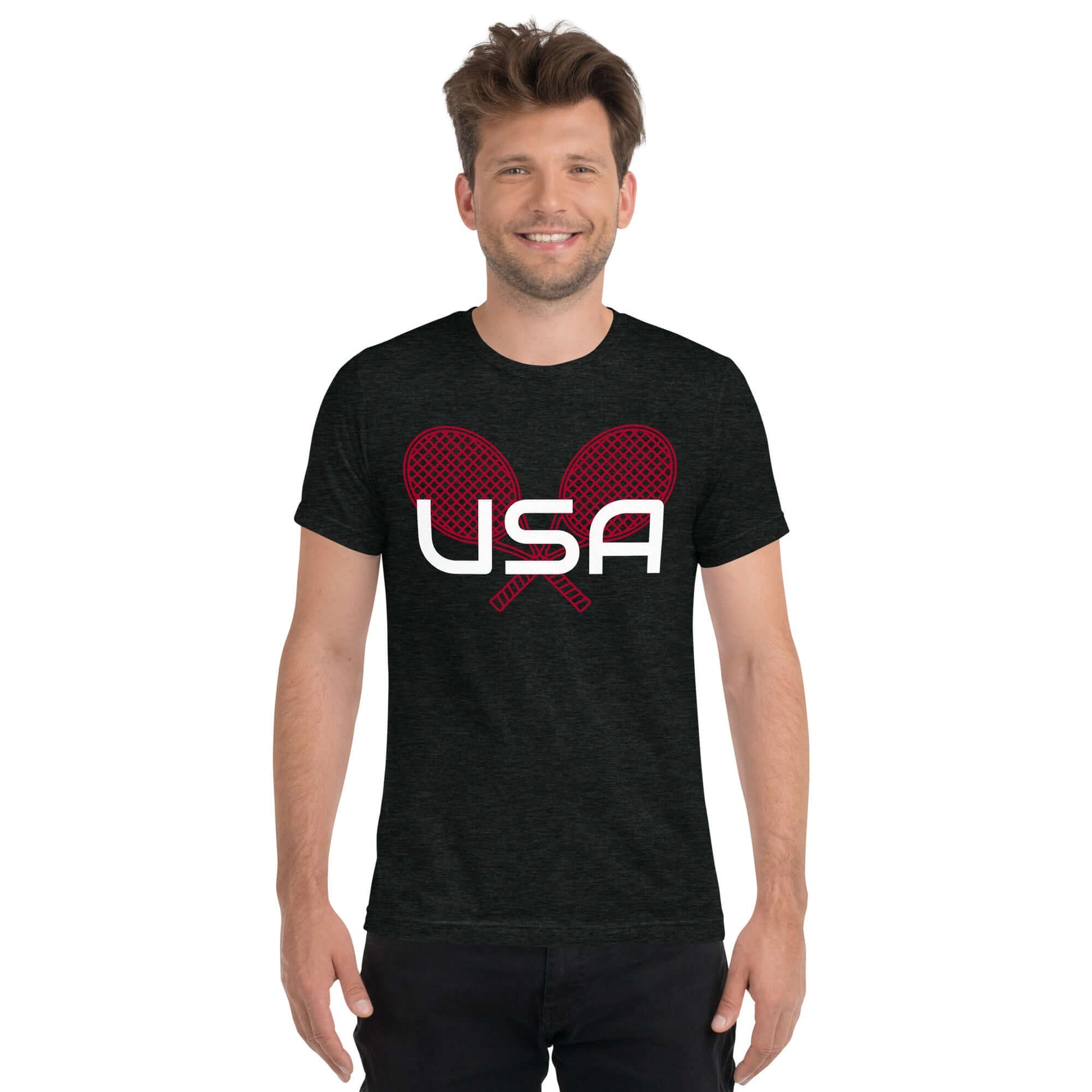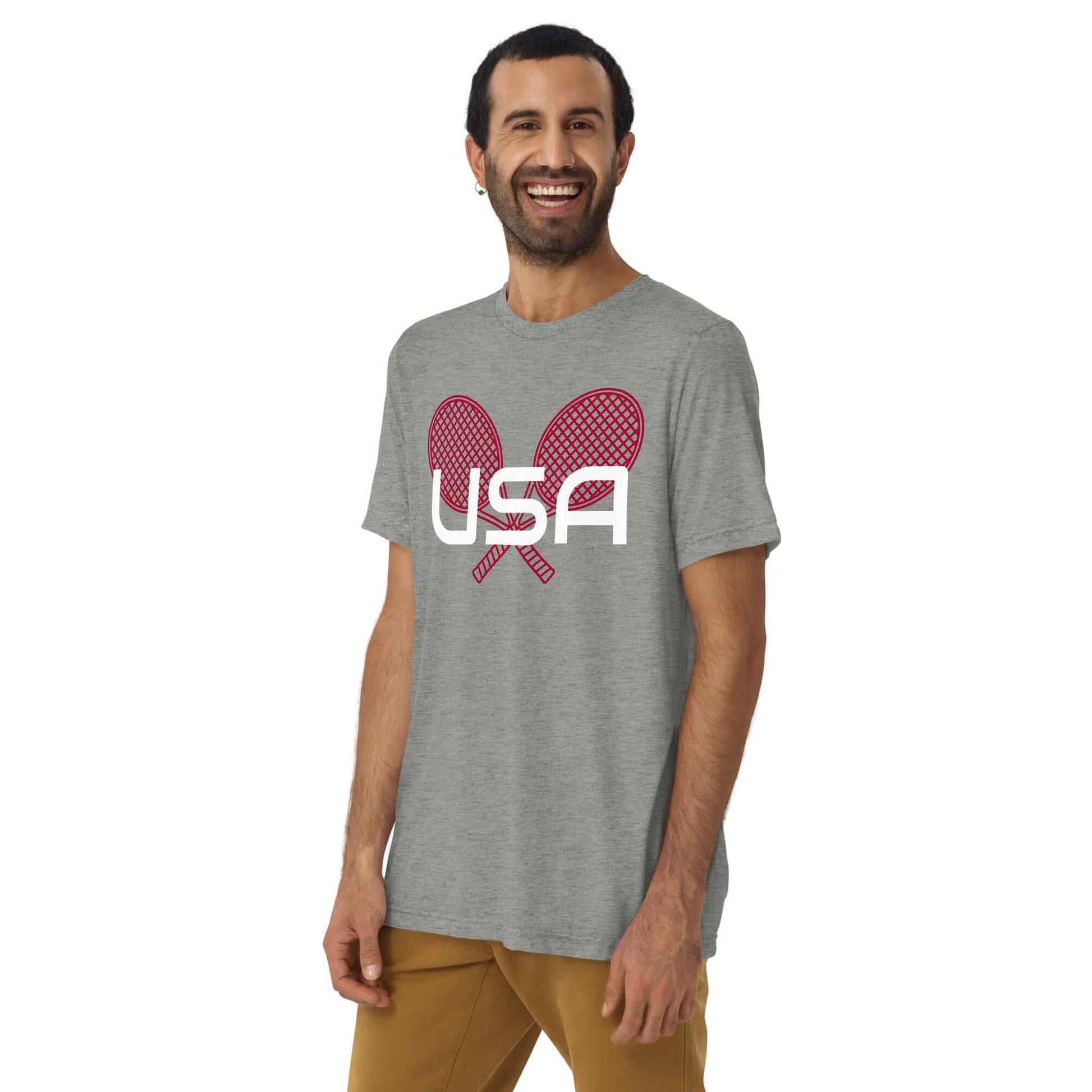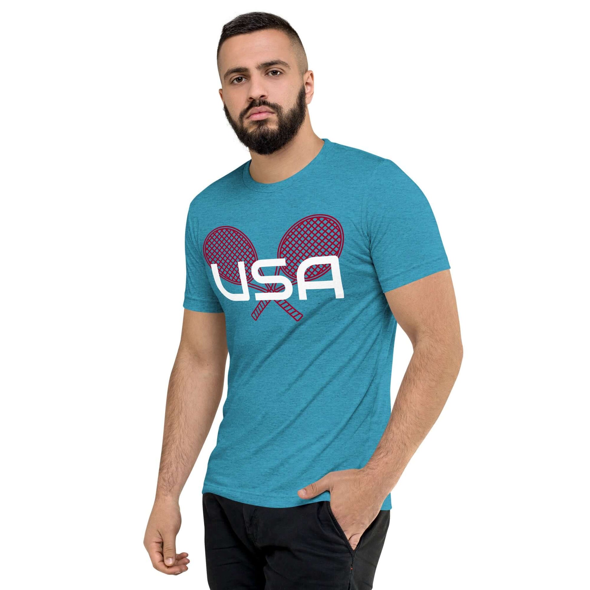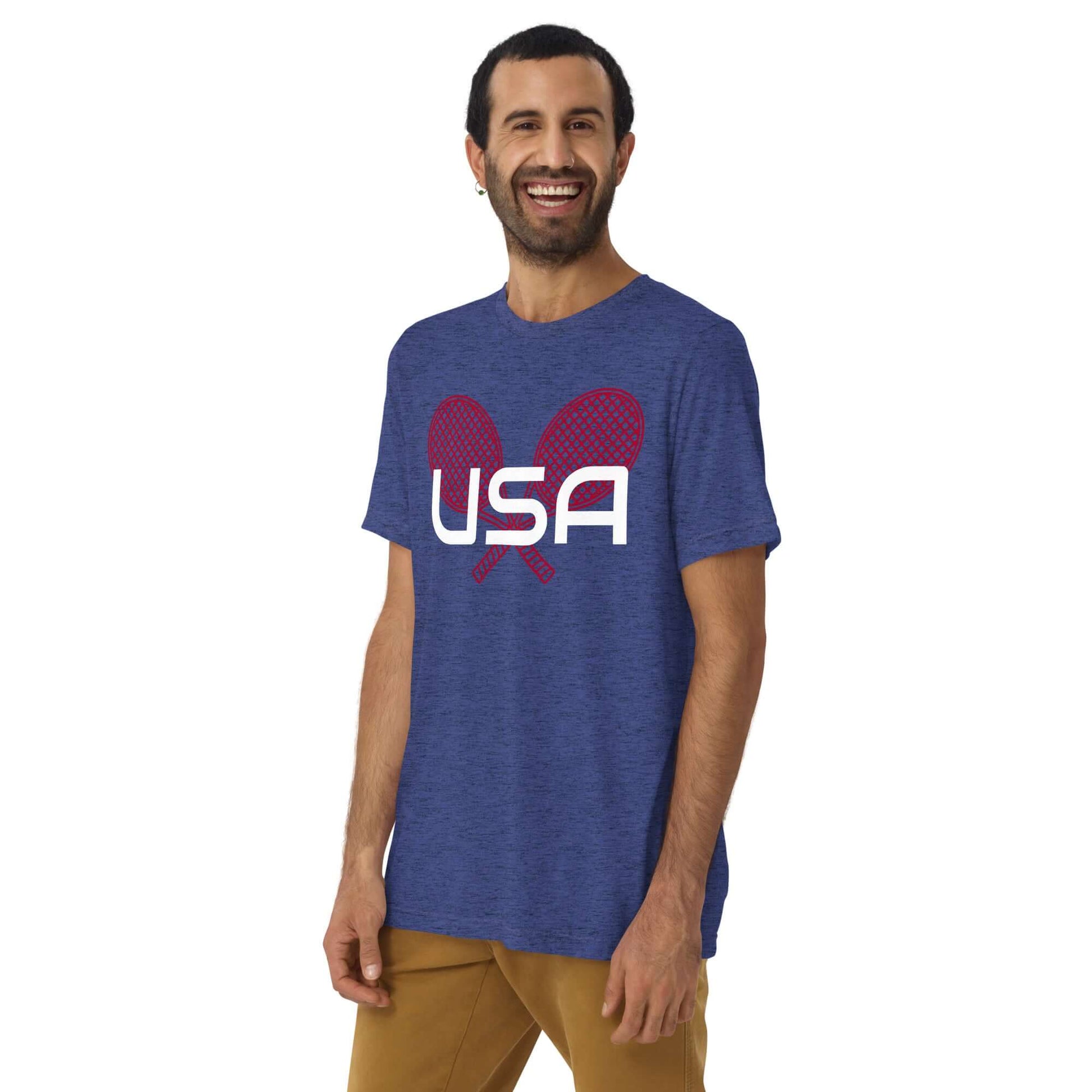 Score on and off the court! Our USA Tennis Men's T-Shirt combines vintage vibes with unbeatable tri-blend comfort.