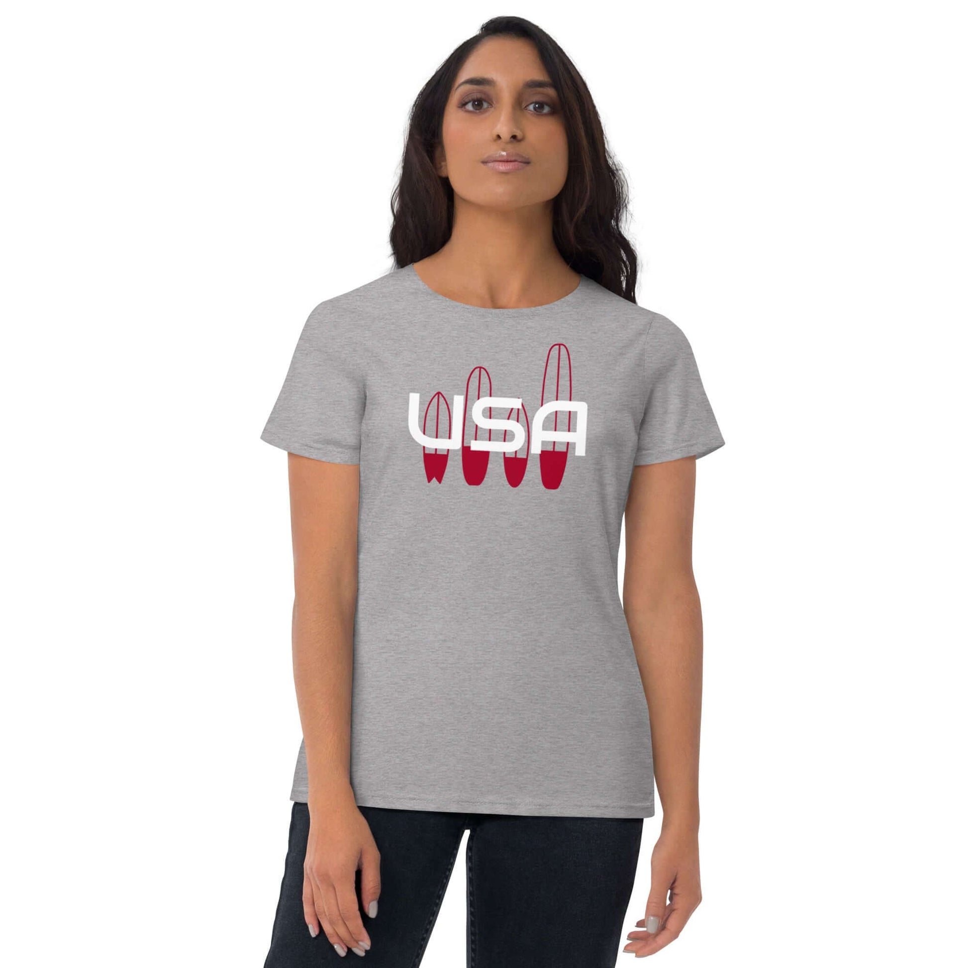 Dive into style & comfort with our USA Surfing Women's T-shirt. Perfectly pre-shrunk & crafted for USA surfing lovers.